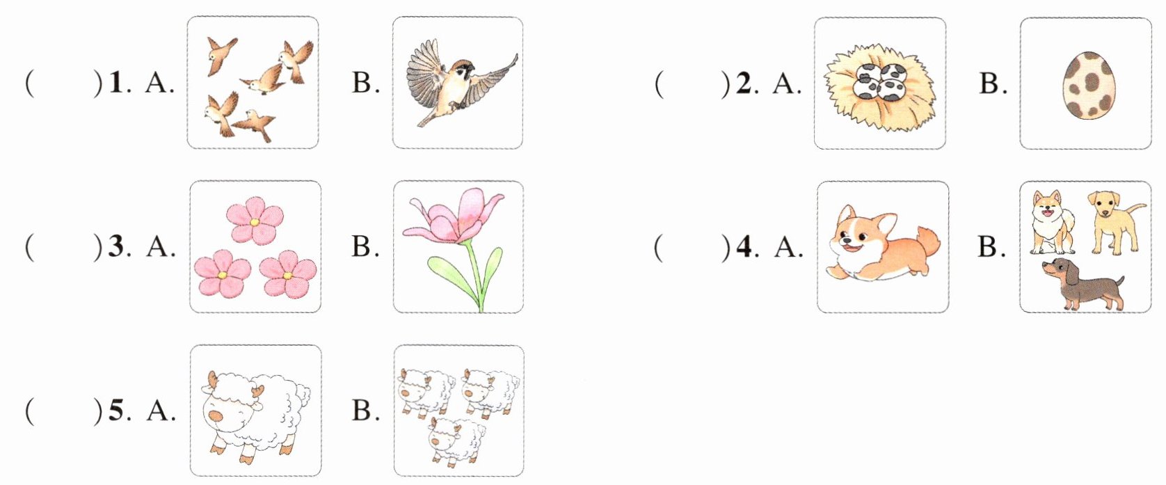 二 小朋友们在谈论花园里的事物。听录音, 选出与你所听内容相符的图片。