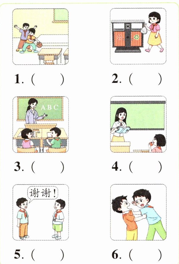 【主题:人与社会——班级与学校规则,规则意识】四(1)班的同学们一起制订了班规。请判断下列行为是(T)否(F)符合班级规定。