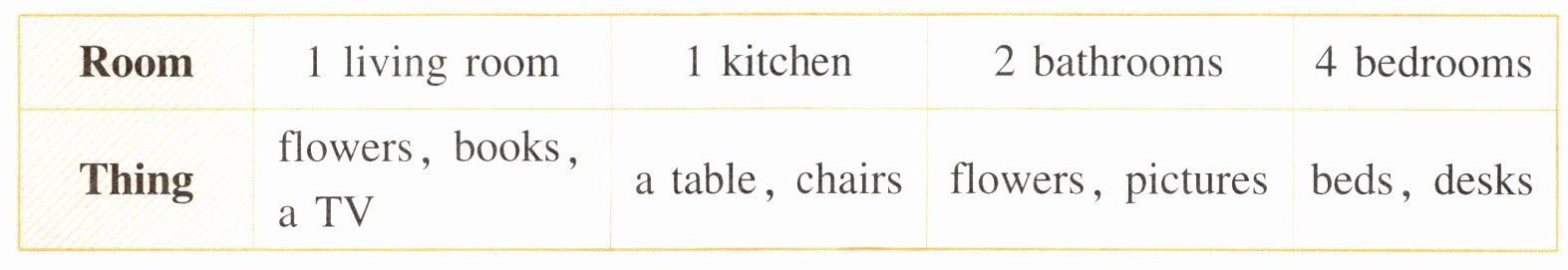 Hello, I'm Nancy. I have a big and tidy house. I live with my parents and grandparents. Look at the table(表格).