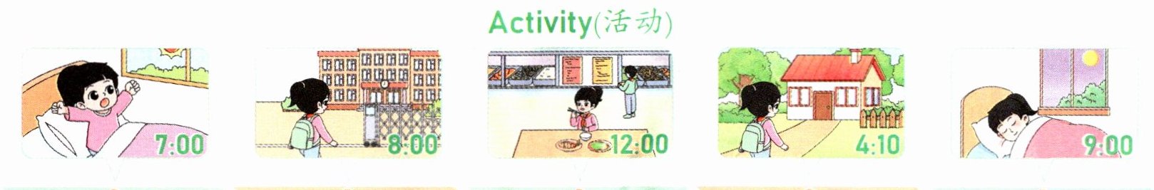 at 4:10 in the afternoon. At 7:00, I have dinner with my family. In the evening, I 5. go to bed at 9:00