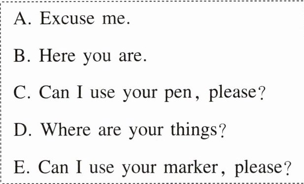 Jack: I'm sorry you can't. I have only one pen. 5. ______