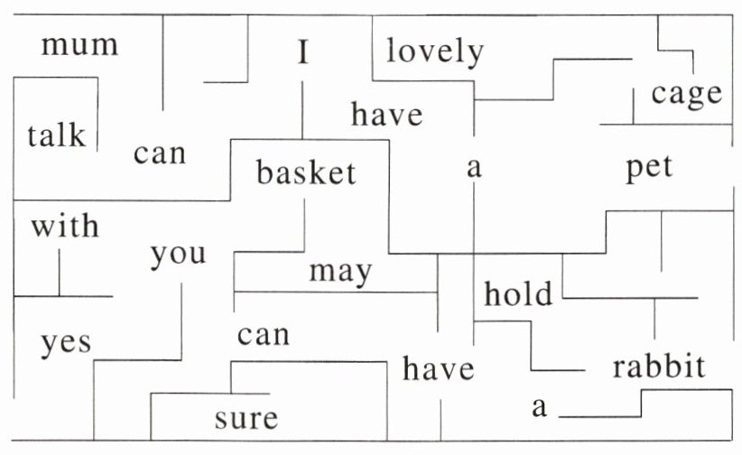 五、亮点题 已知共有两条路线可以走出下面的迷宫,请画出这两条路线,并将沿路遇到的单词组成对话,抄写在四线三格上。(正确使用标点符号哦!)