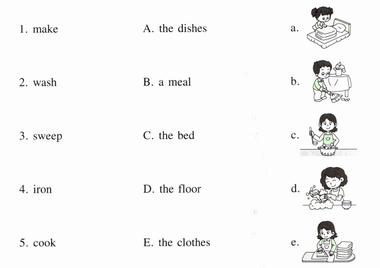 .3. My mother washes the clothes. I help