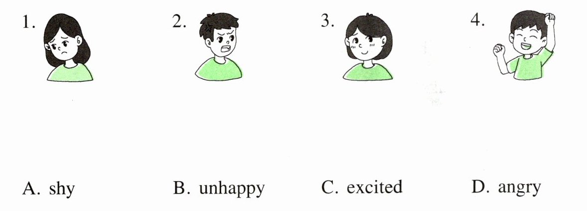 1. noise 2. angry 3. sorry 4. proud 5. sad
