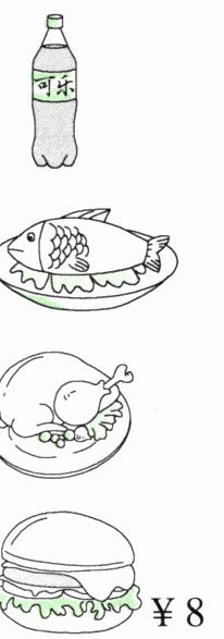 1. I’d like a Coke, please. 2. I’d like some fish. 3. They’d like some chicken. 4. It’s eight/8 yuan.