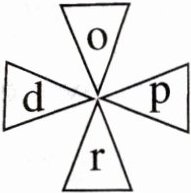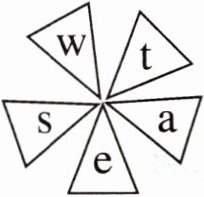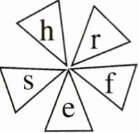 一、根据提示,将风车上的字母排列为正确的单词,并规范地写在四线三格中。