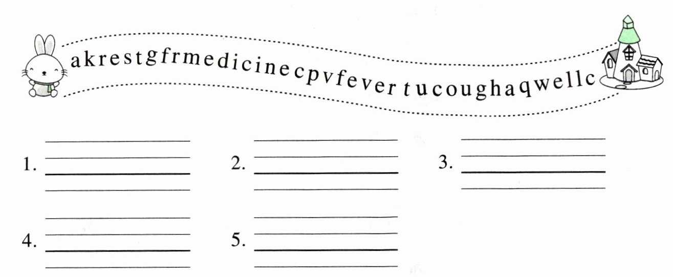 1. rest 2. medicine 3. fever 4. cough 5. well