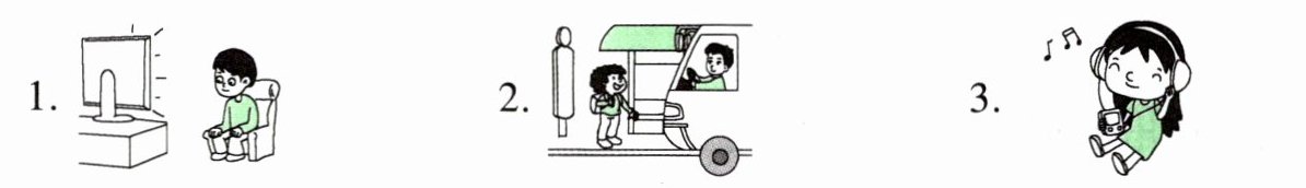 1. He never watches TV. 2. He always goes to school by bus. 3. She sometimes listens to music.