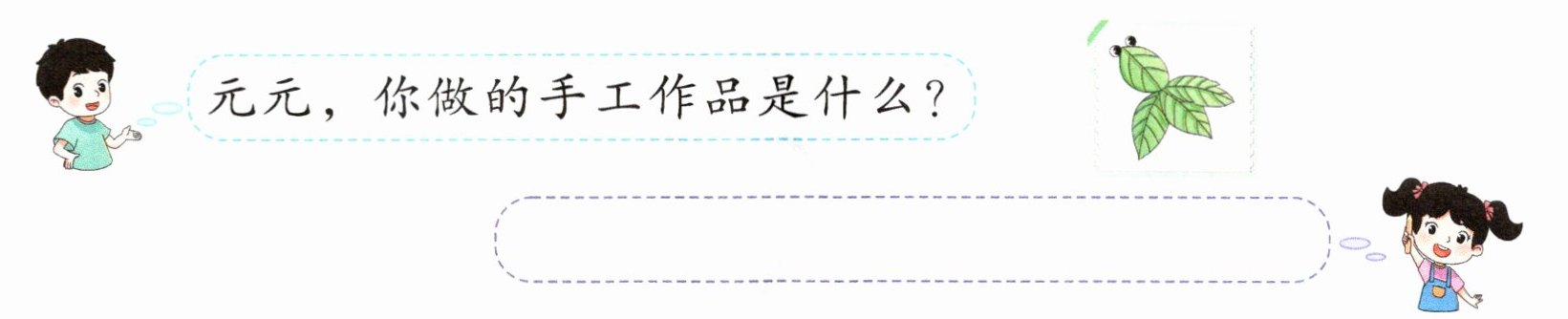 7. 观察下面的树叶画,根据提示帮元元介绍一下怎么做树叶画吧!