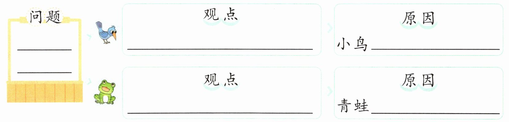天到底有多大? 小鸟:天无边无际,大得很哪! 从天上来。 青蛙:天不过井口那么大。 天天坐在井里。 ②