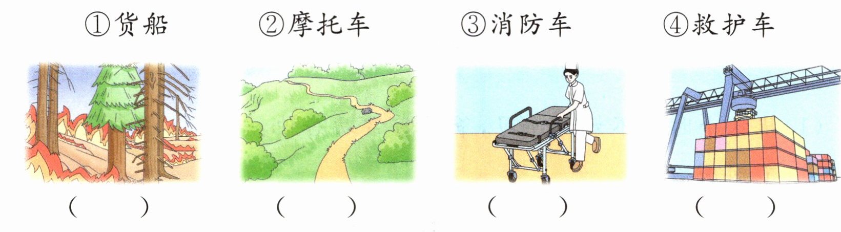 1. 下面的场景中,可能会用到哪种交通工具?选一选。(填序号)