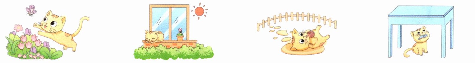(2)捉蝴蝶 晒太阳 玩毛线球 吃鱼