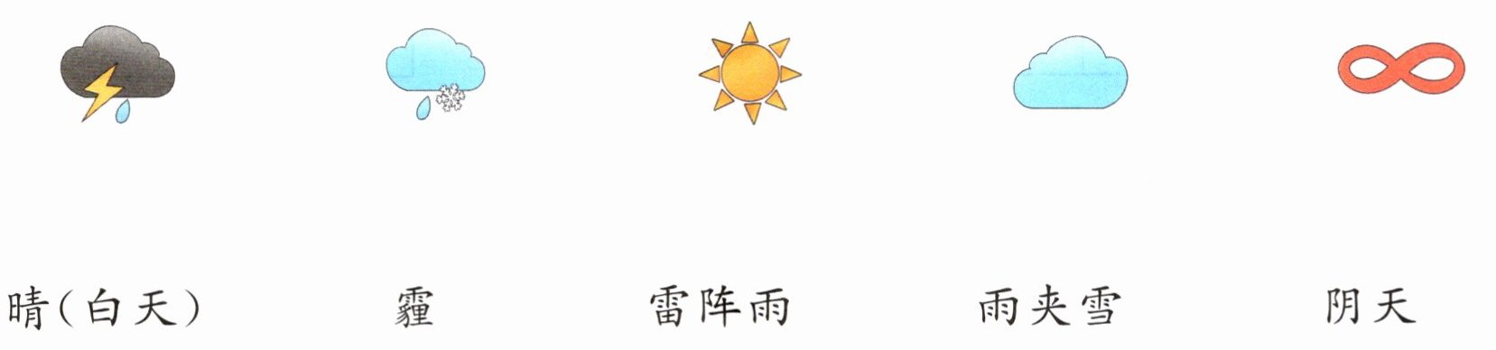 (2) 元元发现,有两个天气图形符号很特别。请你根据提示,帮助元元选择对应的天气图形符号。(填序号)