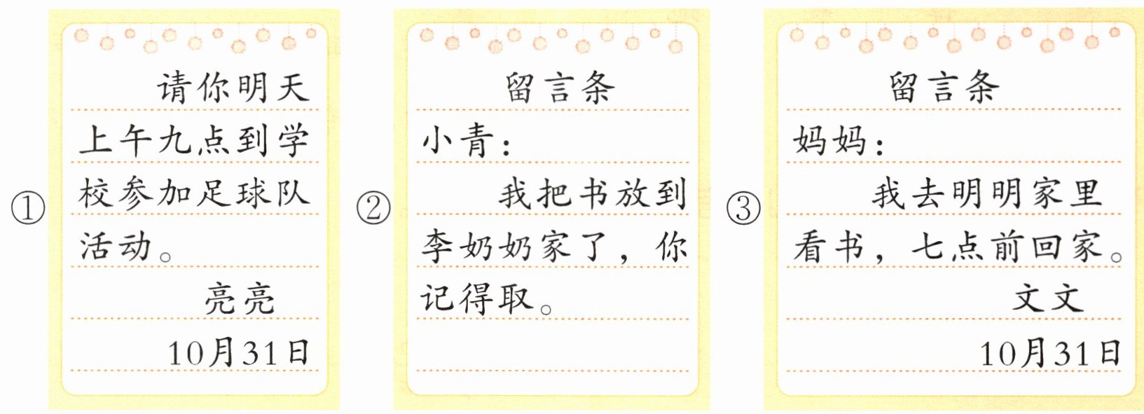 5. 同学们写的留言条中,谁的留言条格式是正确的?(