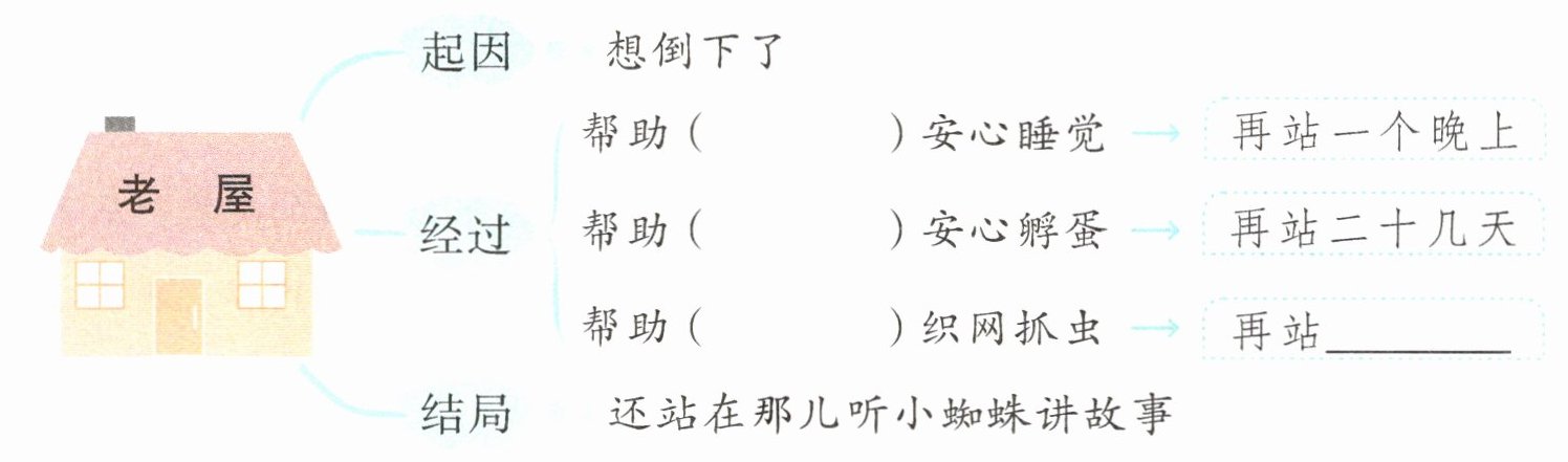 四 新思维 老屋为什么总也倒不了?联系课文内容完成下面的思维导图。