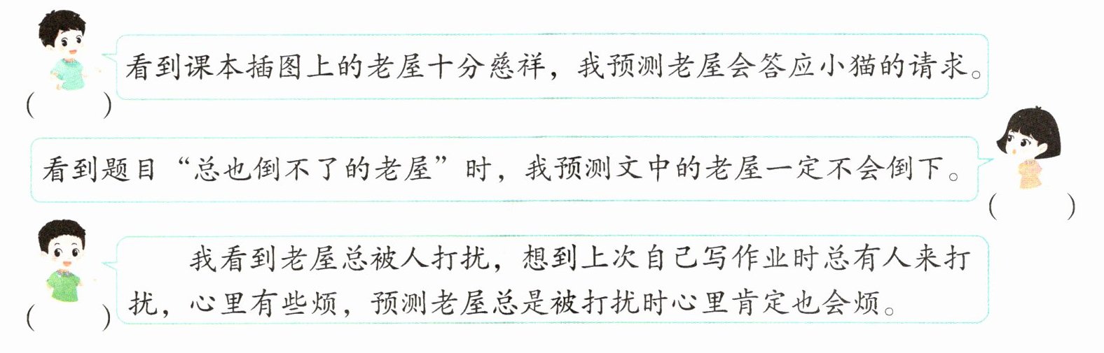 3. (语文要素)阅读选文时,三位同学作出了以下预测,请你选出他们预测的依据。(填序号)