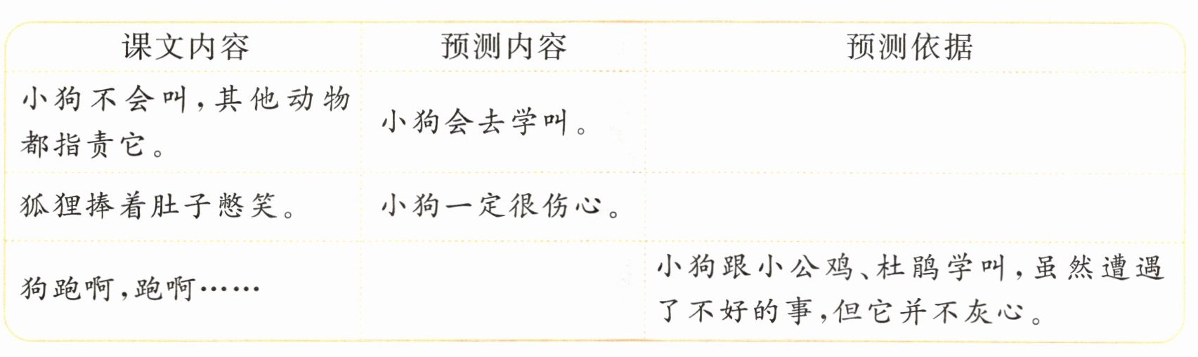 五 新思维 照样子,根据提示预测课文中小狗的另外两种结局。