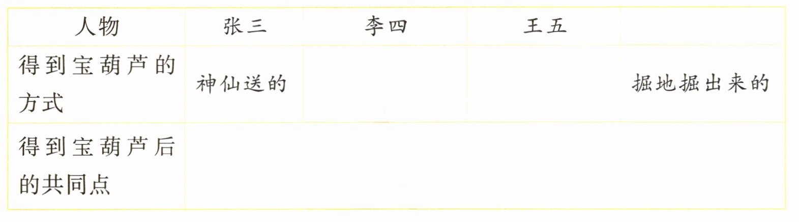 七 新思维 结合全文,根据奶奶给“我”讲的故事,将下列表格填写完整。考点3