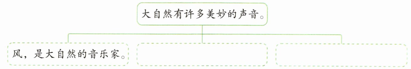 五 课文写了大自然的哪些声音?照样子找出关键句,完成思维导图。
