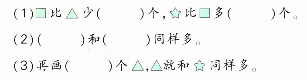(1)$□比\triangle$少( )个,$☆比□$多( )个。