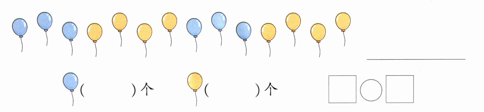2. 先按规律接着画3个气球,再数一数,比一比。