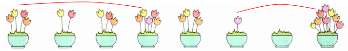 )朵。(3)将图中合起来是9朵的两个花盆连起来。