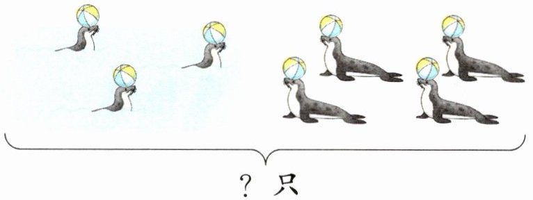 图中岸上有$3$个人,船上有$2$个人,求一共有多少人,用加法计算,可列出算式: