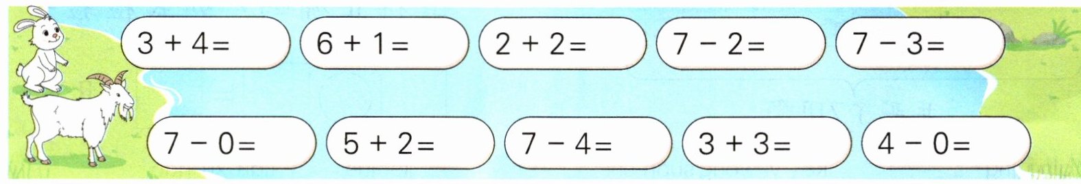 图里左边有两个小朋友,一个小朋友旁边有个桶(里面衣服数量未知),另一个小朋友旁边绳子上挂着$5$件衣服,总共$7$件衣服,要解决桶里衣服有几件的问题;右边有两部分小朋友,一部分$2$人,另一部分$4$人,要解决一共有多少人的问题。