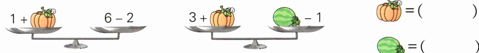 4. 两边得数相等时天平平衡,下面的瓜分别代表几?