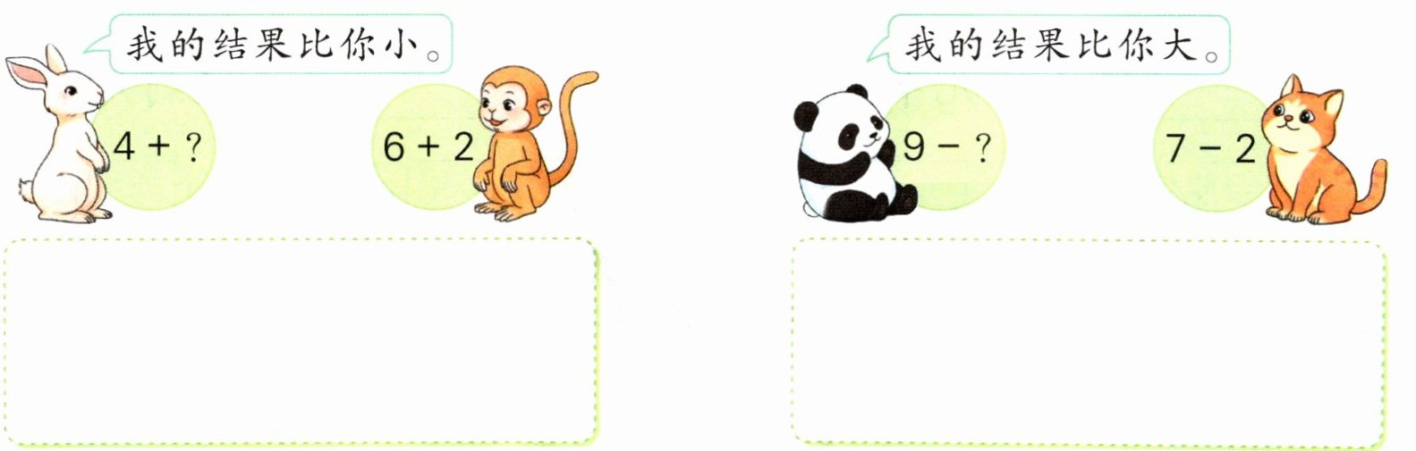 【解析】本题可以用尝试法解决。先计算出已知算式的结果,再从“?”是0开始尝试计算左边的算式,找出符合要求的算式即可。