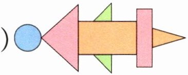 摆左边图形,没有用到(○ □ ▭ △),用了(4 5)个△。