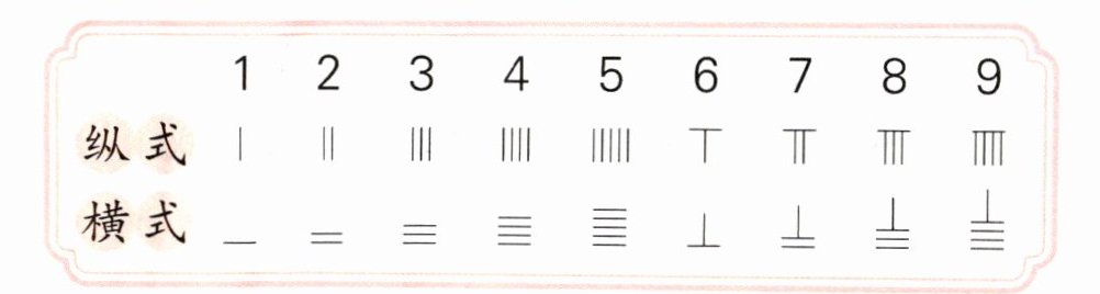 4. 古人用算筹表示数,具体方法为纵式和横式交替出现,个位用纵式,例如:—||表示 12。那么表示 15 和 17 各要用几根算筹?(先用算筹表示,再数一数)