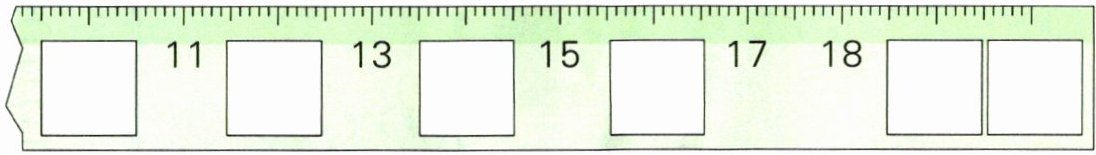 1. 先将尺子图上缺少的数补充完整,再完成下面各题。