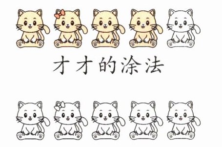 1. cóng zuǒ biān shǔ cái cai gěi dì zhī māo tú shàng yán sè
