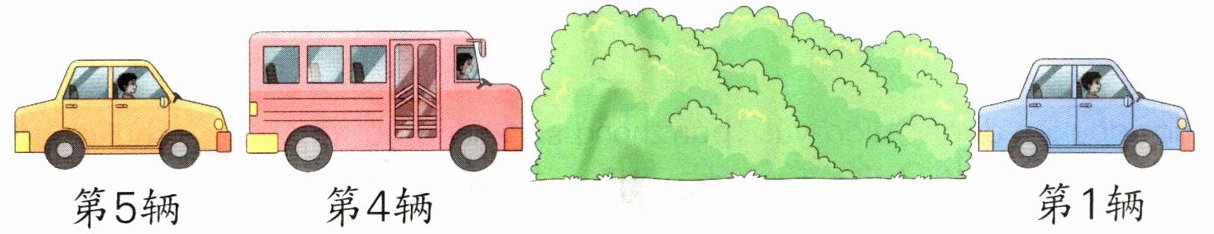 (1)1~5按从小到大的顺序排列是1、2、3、4、5,可以看出树丛挡住了第2辆和第3辆车,共2辆。