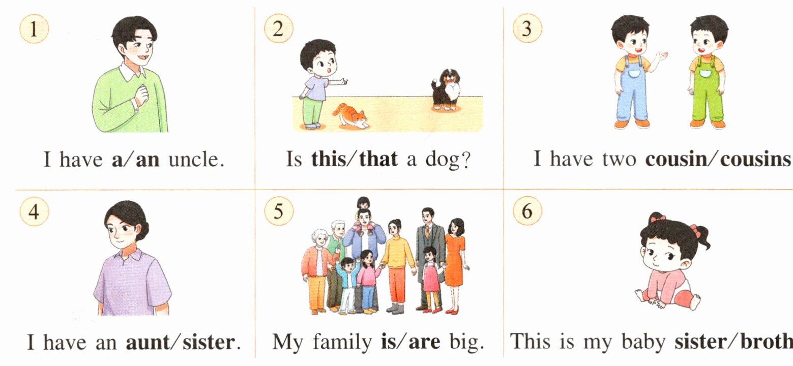)2. Ella: I have a brother, a baby sister and two cousins.(