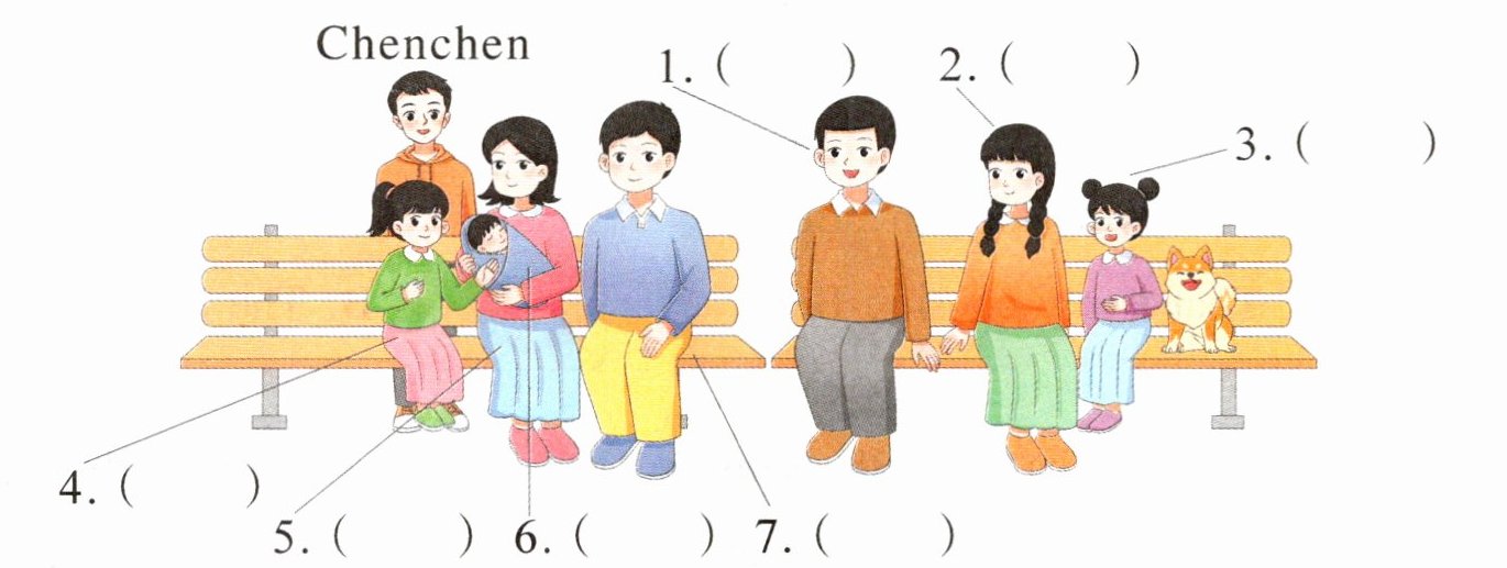 一、辰辰的家人正在拍全家福,请给他们匹配相应的称呼。