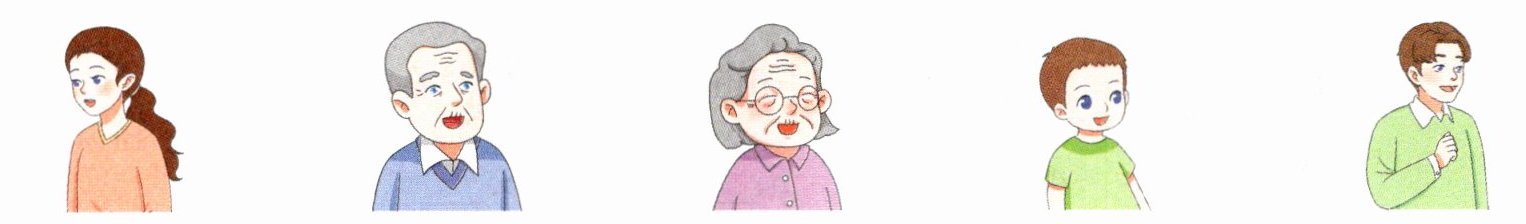 一、Tom 正拿着照片热情地介绍自己的家庭成员。听录音,请你按照他介绍的顺序用数字 1~5 给下列图片排序。