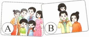 二、同学们正一边布置各自的家庭照片墙,一边向大家介绍。请根据介绍选择正确的照片。