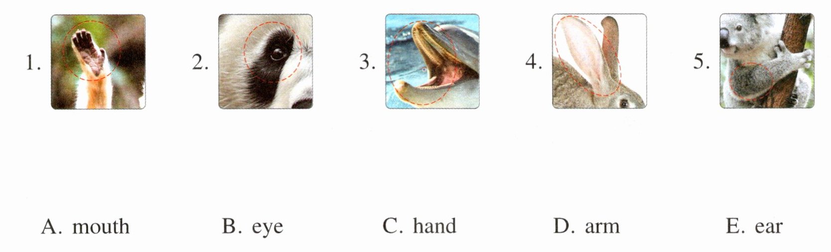 一、观察下列图片,看看它们分别是小动物们的什么部位?连一连。