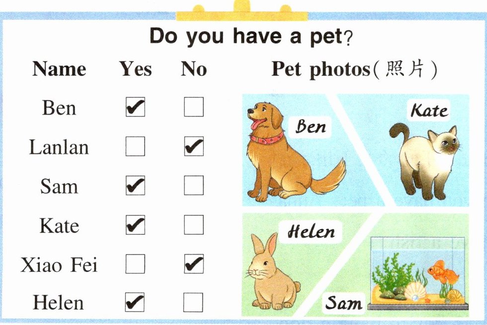 )5. Lanlan and Xiao Fei don’t have a pet.