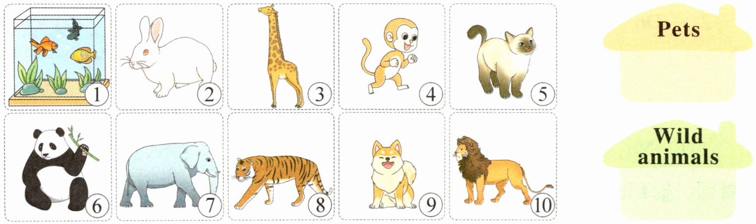 任务一:Pets:①②⑤⑨Wild animals:③⑥⑦⑩