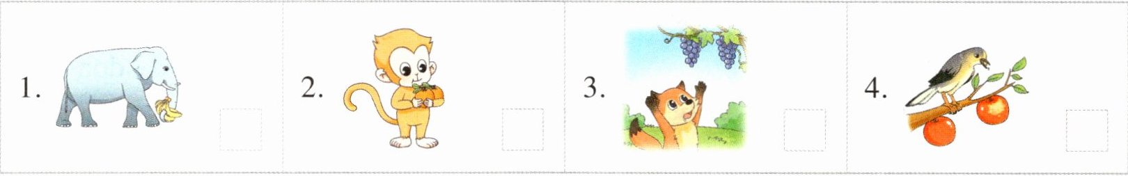 四、阅读对话,勾选(√)出小朋友们喜爱的水果。