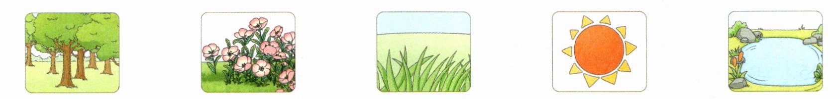 一、同学们在农场上看到了许多事物。听一听,用数字 1~5 给下列图片排序。