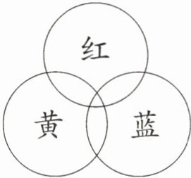 一、将红、黄、蓝其中两种颜色等比例混合可以得出哪些颜色?选一选。