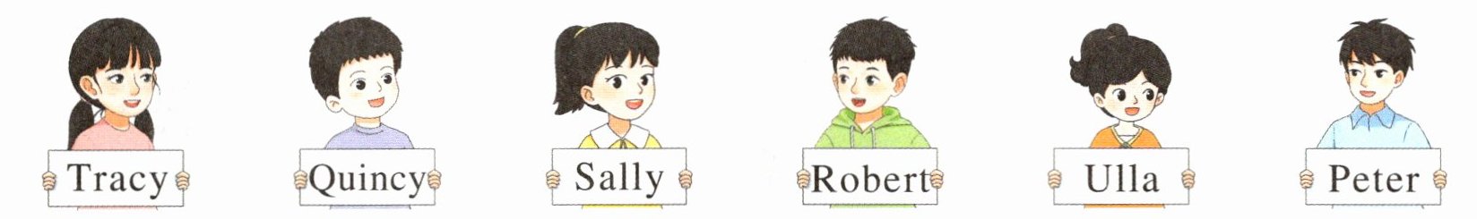 二、Tracy 所在的英语学习小组正在制作统计表。请按照名字首字母在字母表中的顺序,用数字 1~6 给下面的同学排序。