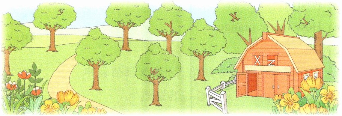 四、找出图中隐藏的大小写字母,并按字母表顺序将其规范地书写在四线三格上。