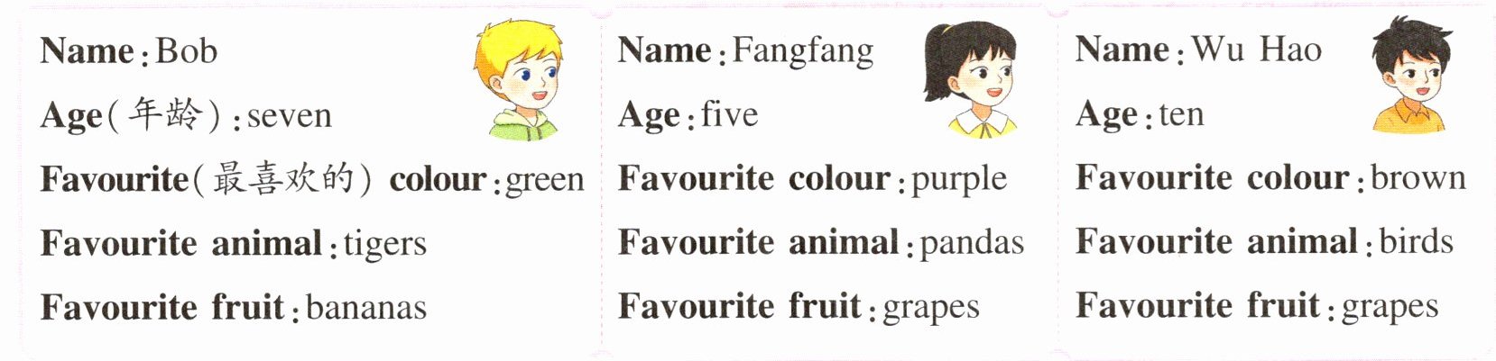 )1. Bob likes ______ and Wu Hao likes ______.A. blue; black