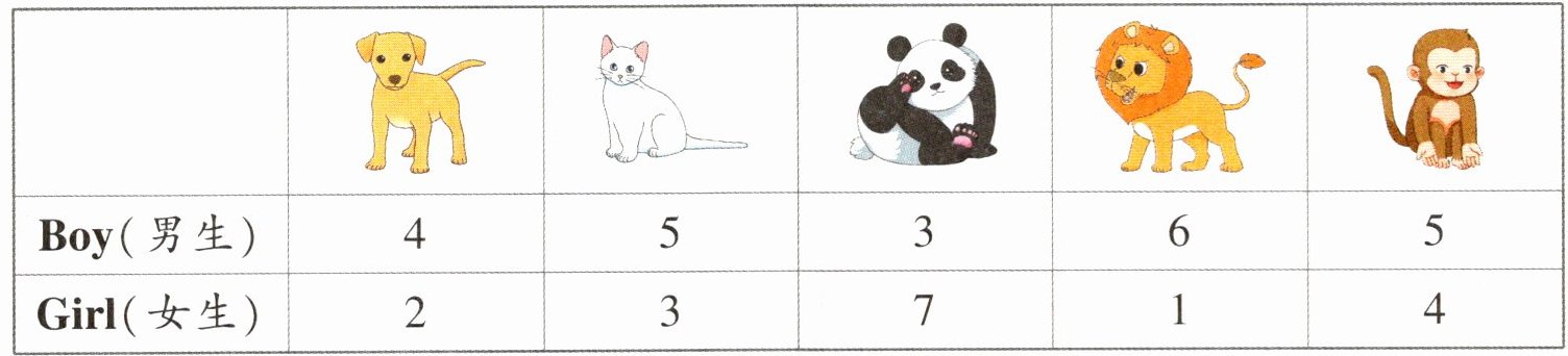 二、【主题:人与自我——个人喜好与情感表达】路路调查了全班同学喜欢的动物。阅读表格,按要求完成下列任务。
