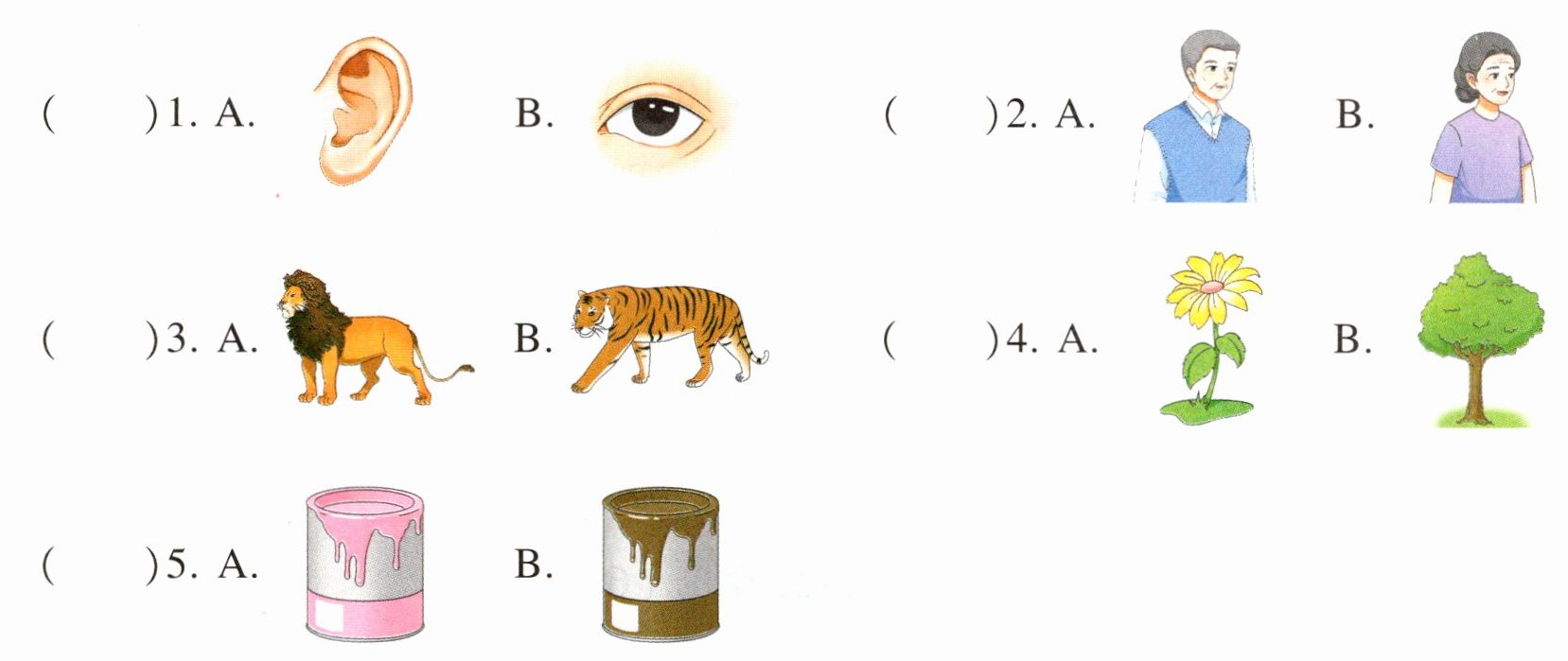 一、听录音,选出与你所听内容相符的图片。听两遍。(5分)